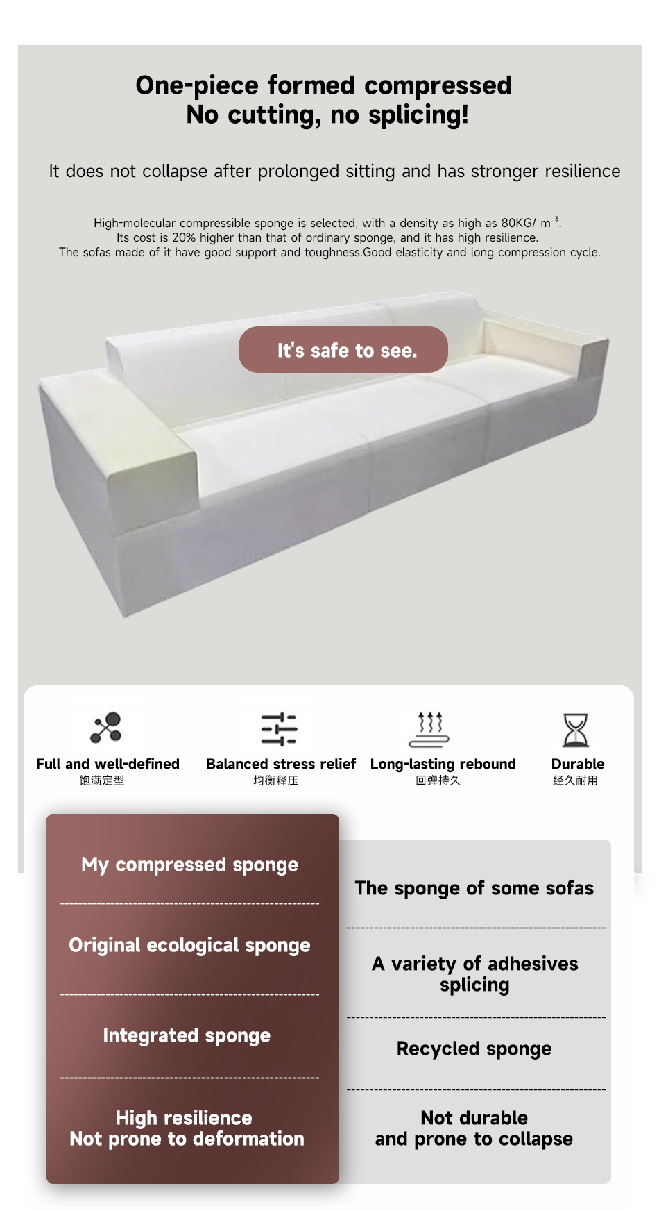 Sponge: A whole piece of original cut high-molecular high-resilience sponge