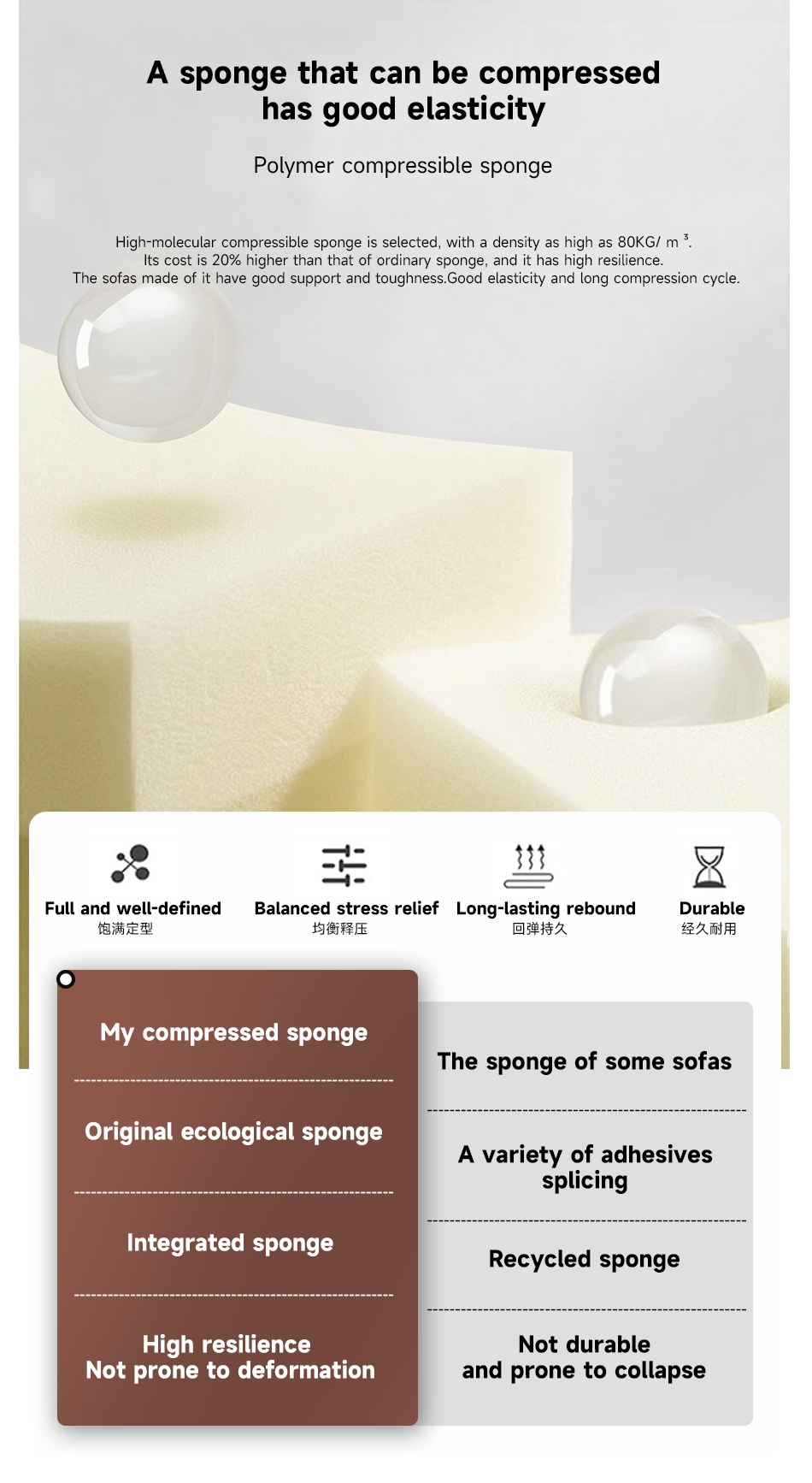 Sponge: A whole piece of original cut high-molecular high-resilience sponge