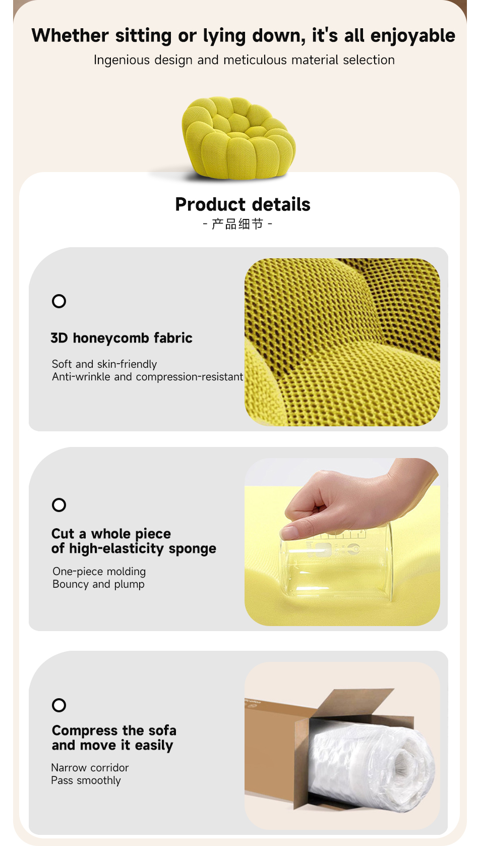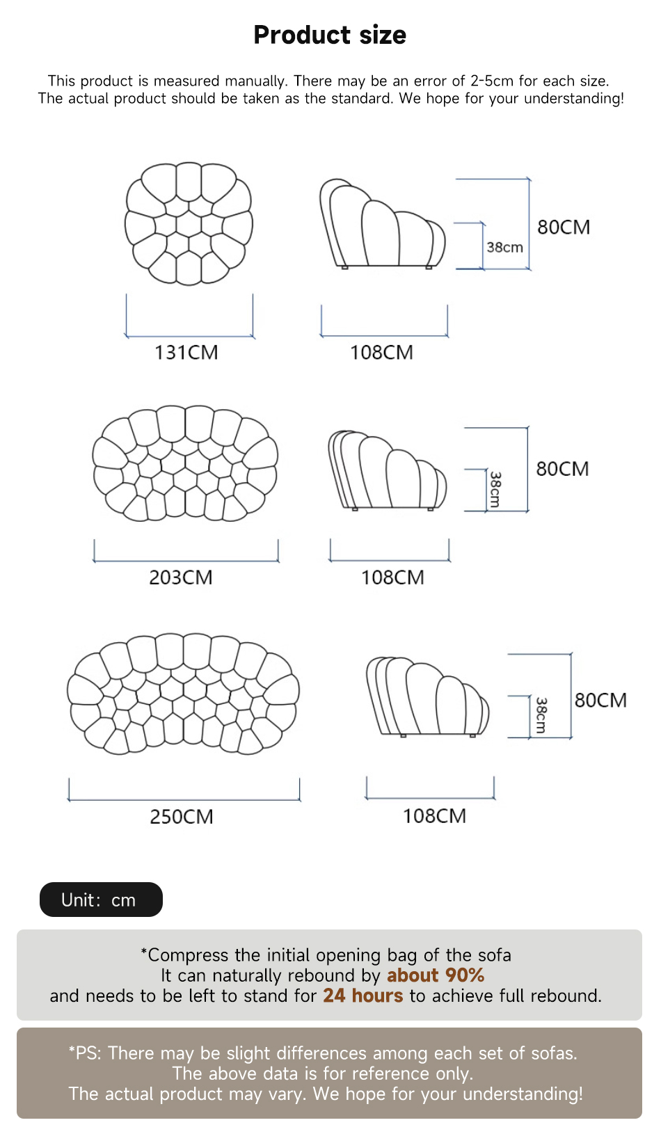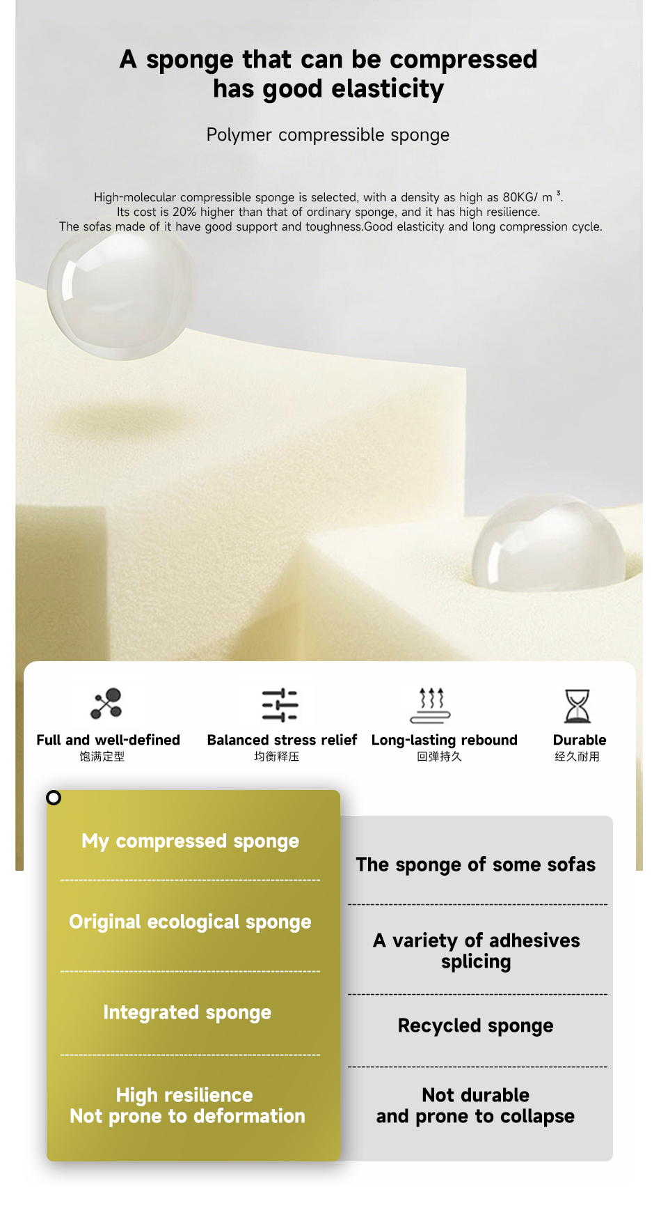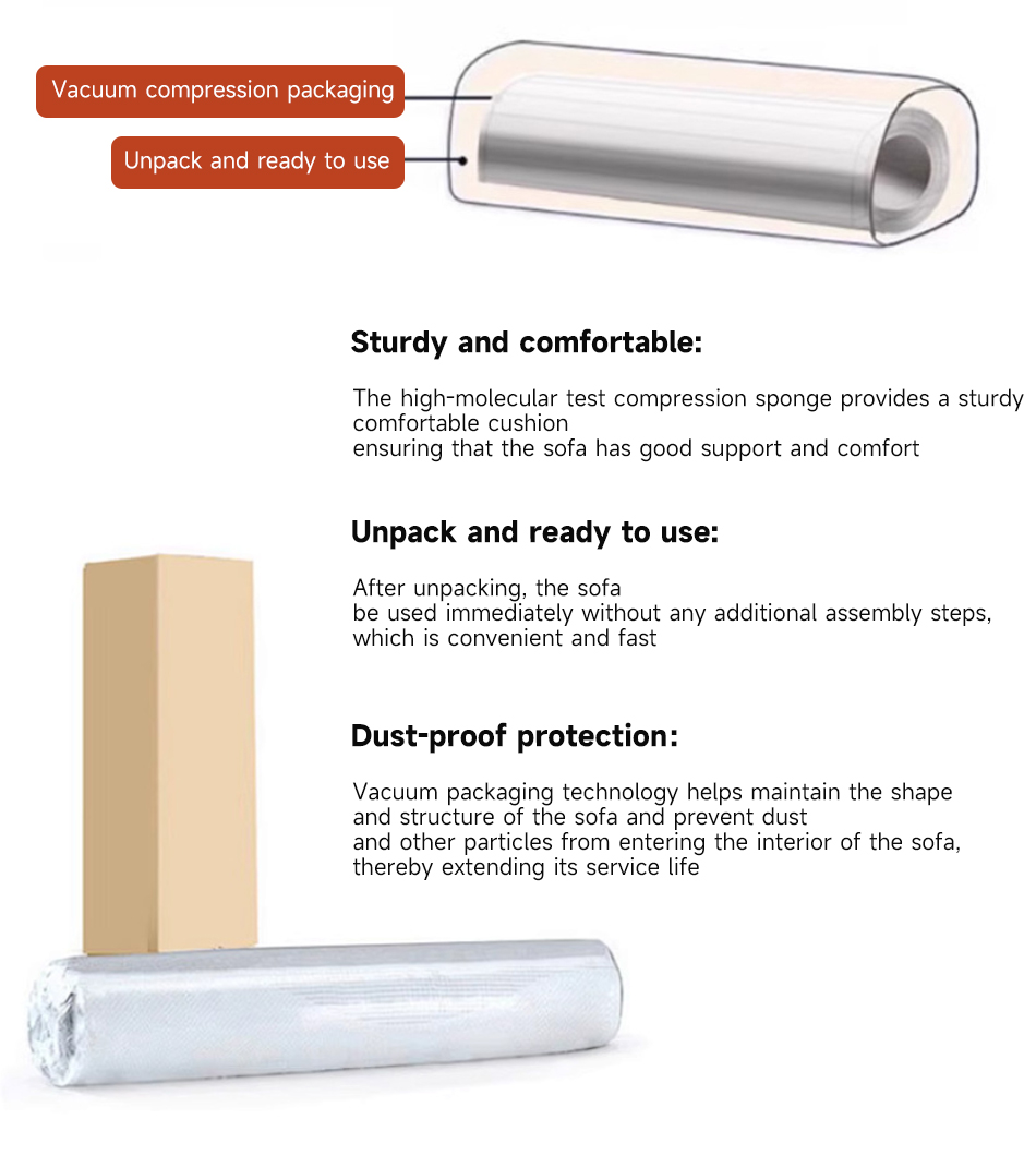 *Compress the initial opening bag of the sofa It can naturally rebound by about 90% and needs to be left to stand for 24 hours to achieve full rebound.